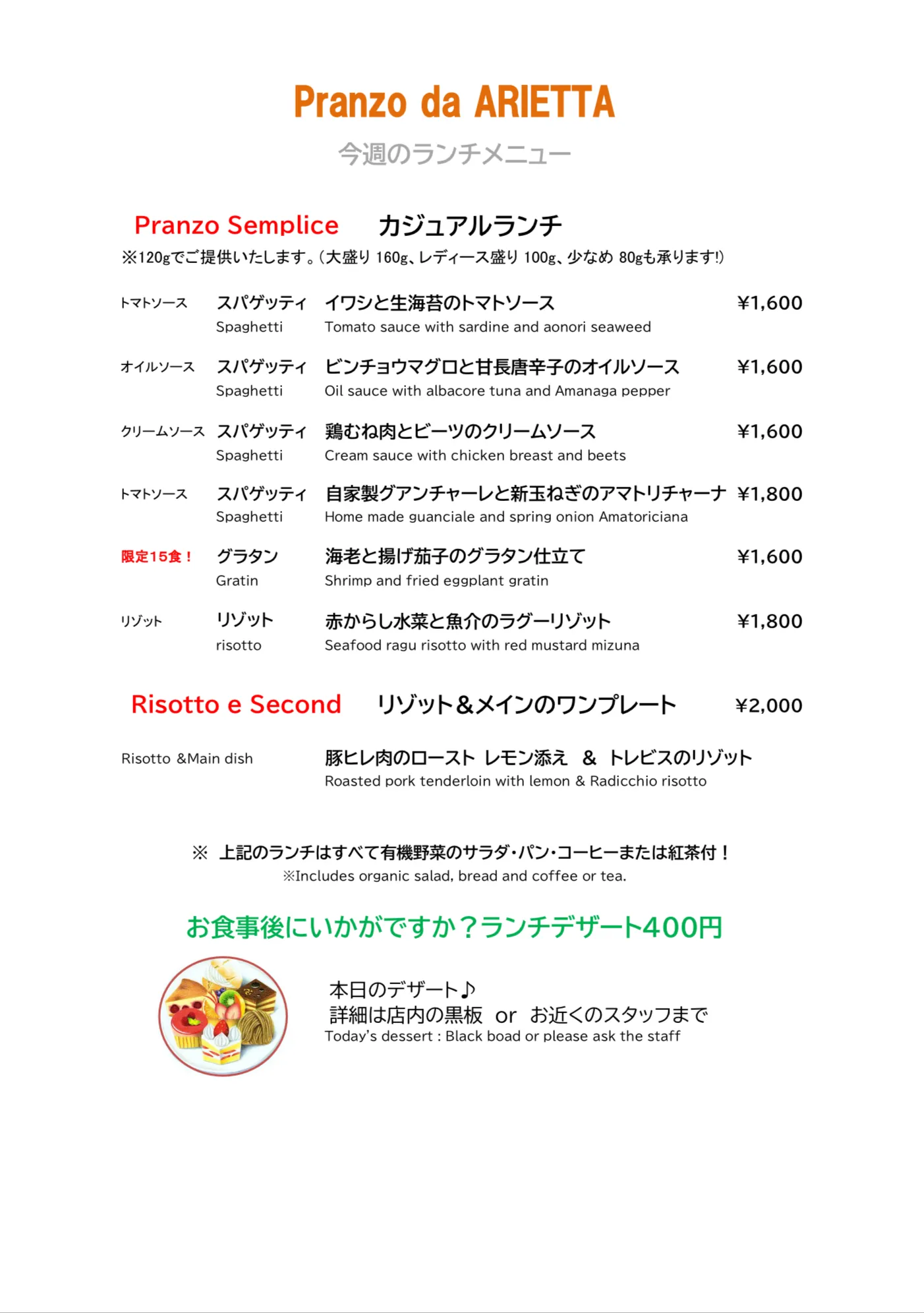 2/24(火)〜のランチメニューです