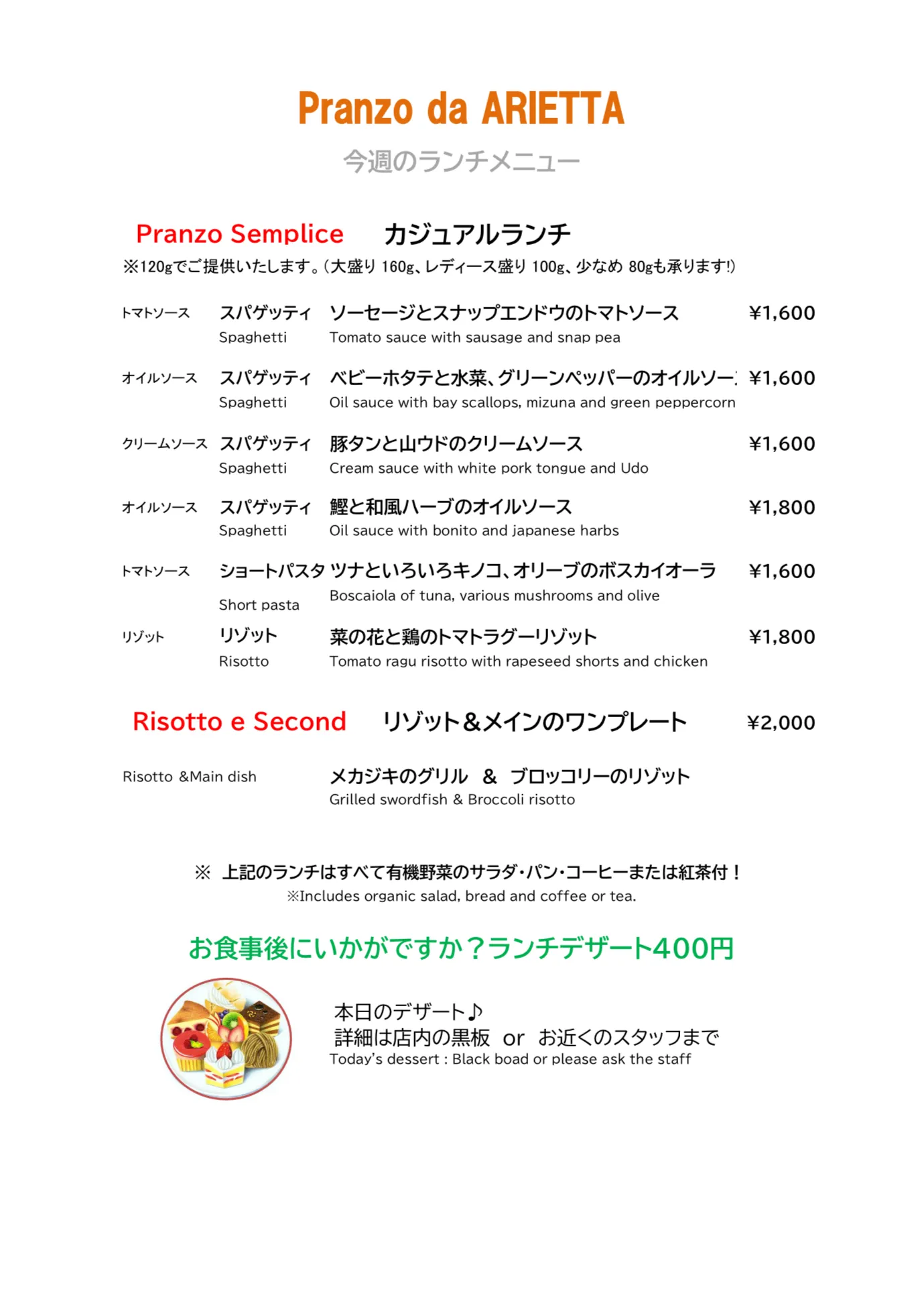 3/9(月)〜のランチメニューです