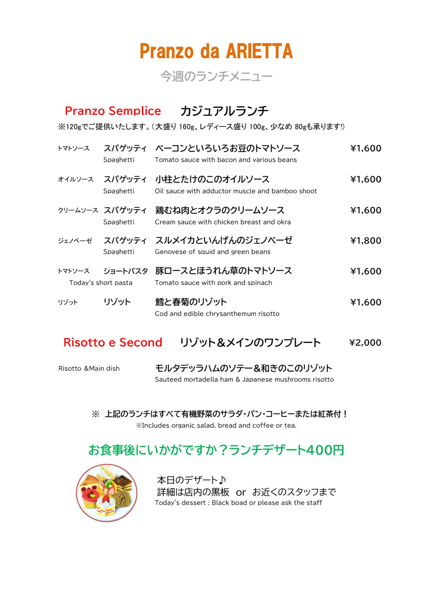 12/1(月)〜のランチメニューです