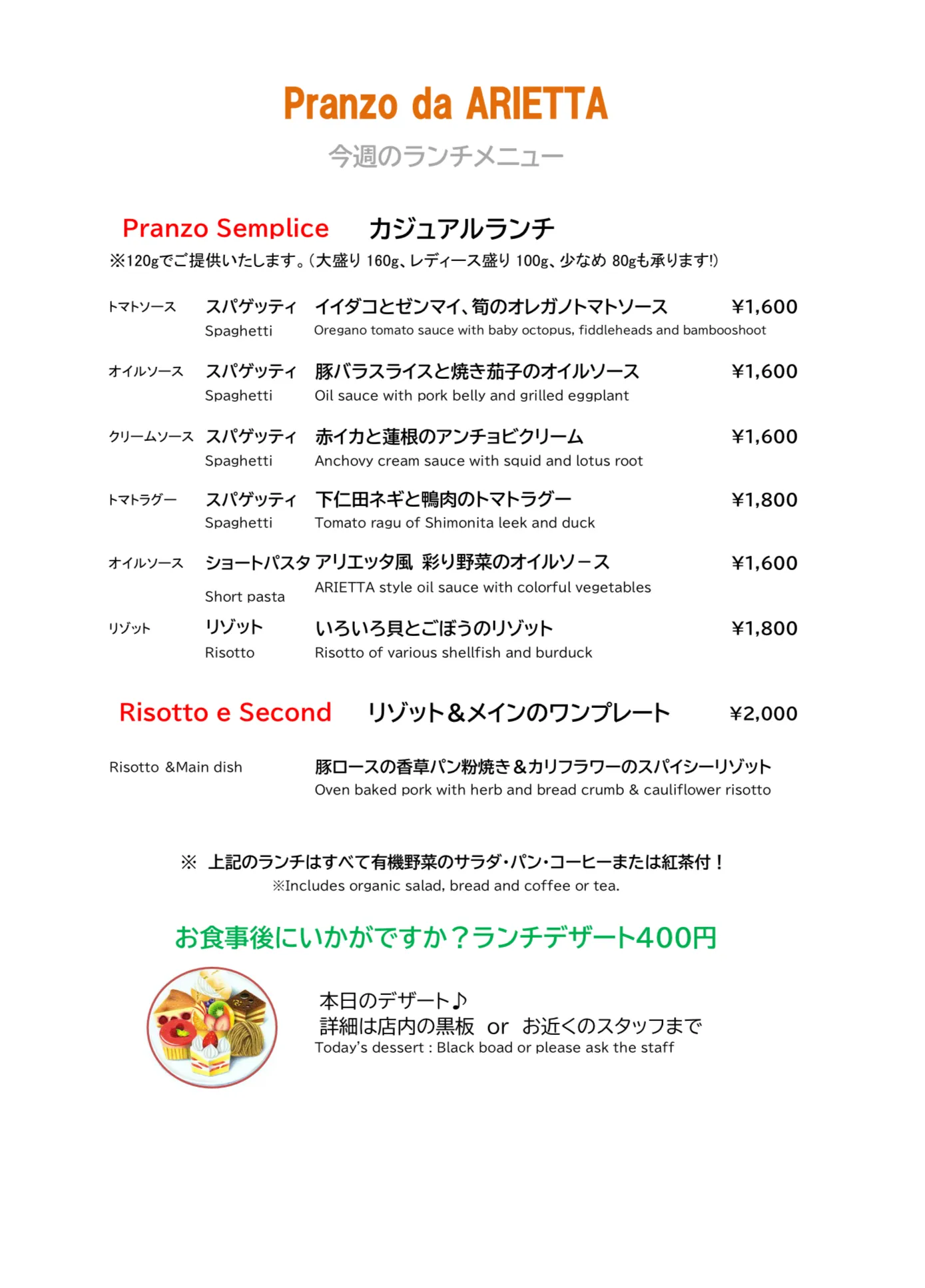 3/16(月)〜のランチメニューです